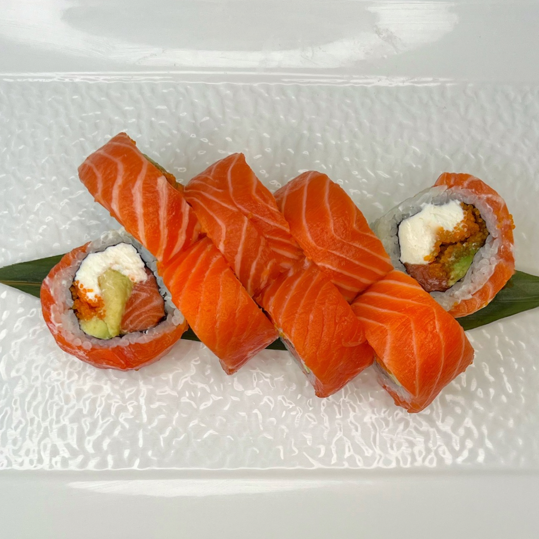 Запечений рол з лососем в ікрі(Вага320g)